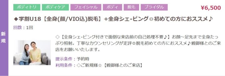 【学割U18】全身脱毛はコチラのクーポンをお選びください♪