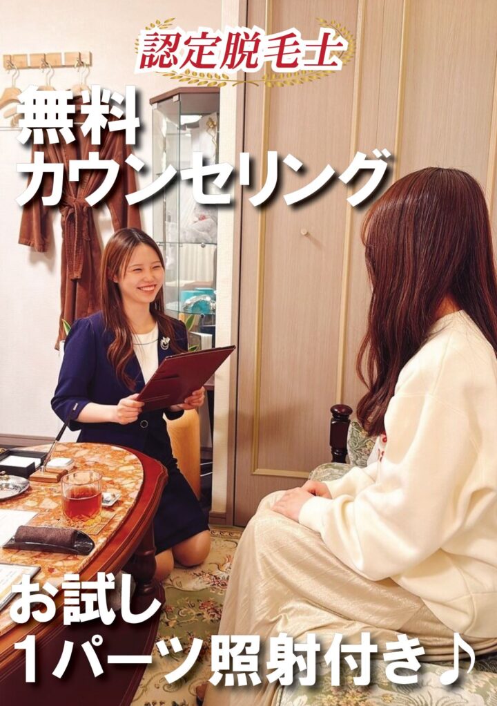 - 料金、回数、痛み、効果、予約、シェービング等々、丁寧にご説明いたします。