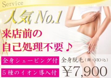 - 全身シェービング付きで来店前の自己処理不要♪